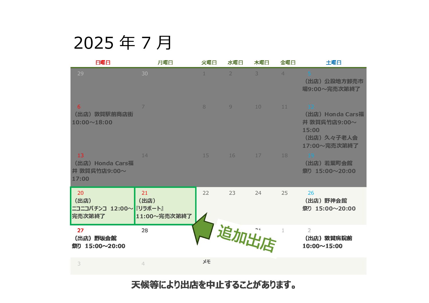 【出店】7月20日(日)21日(月)